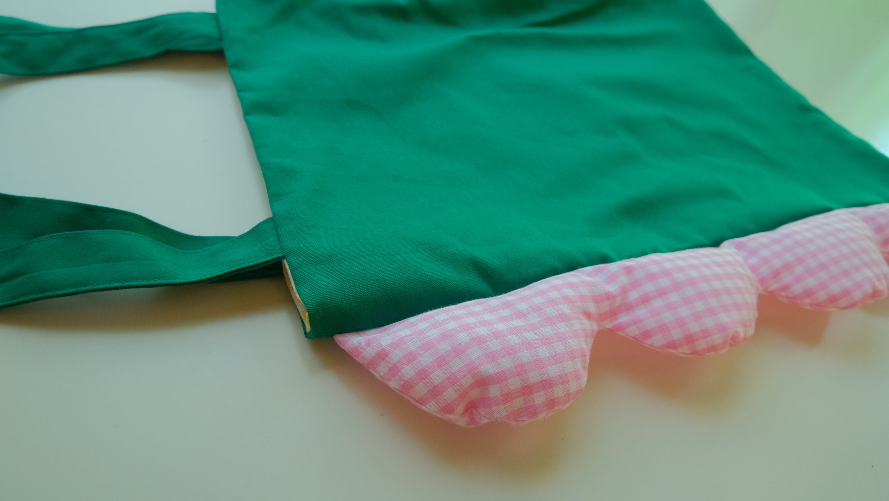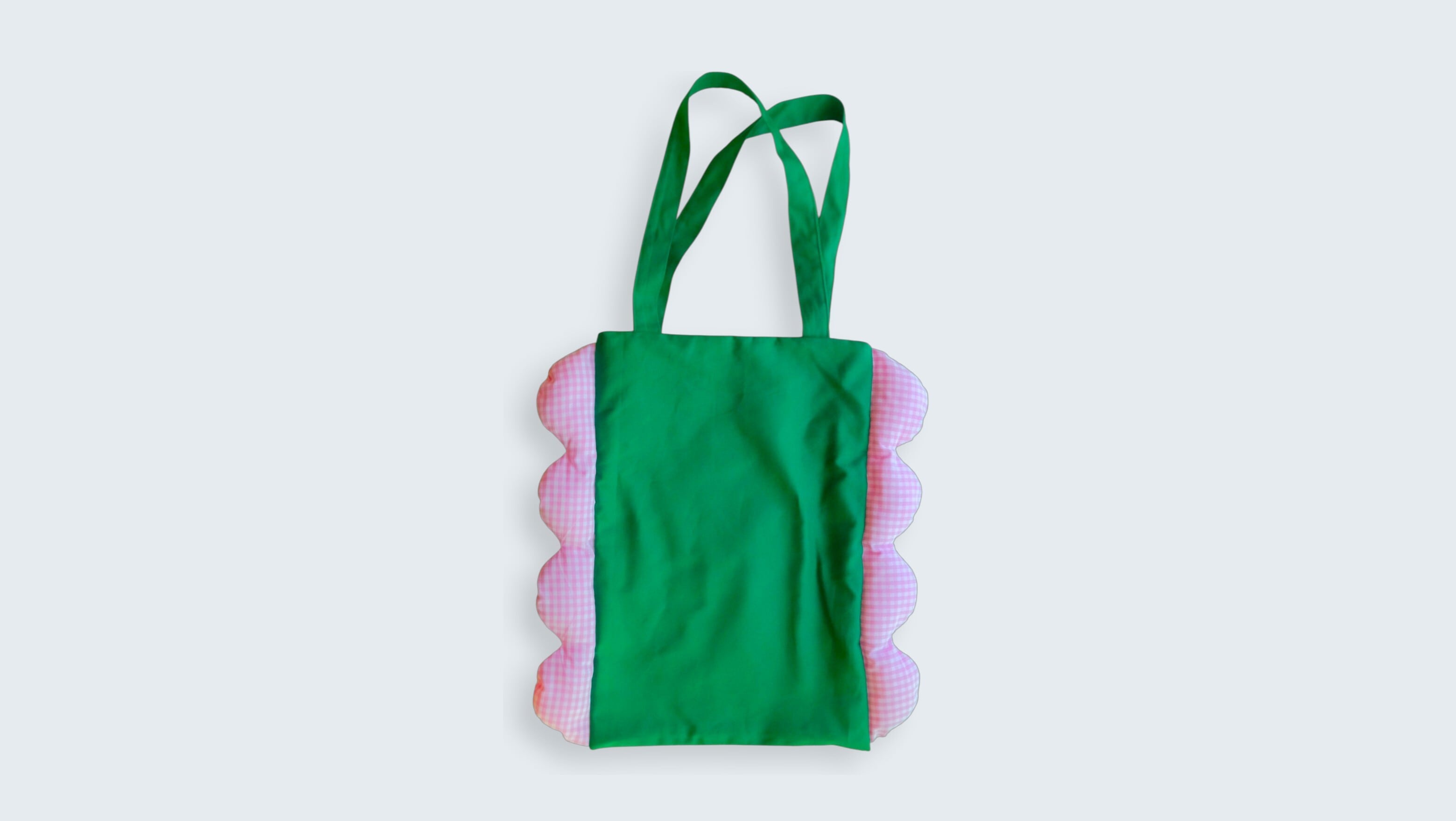 横にクッションのあるトートバッグ|Green × Pink