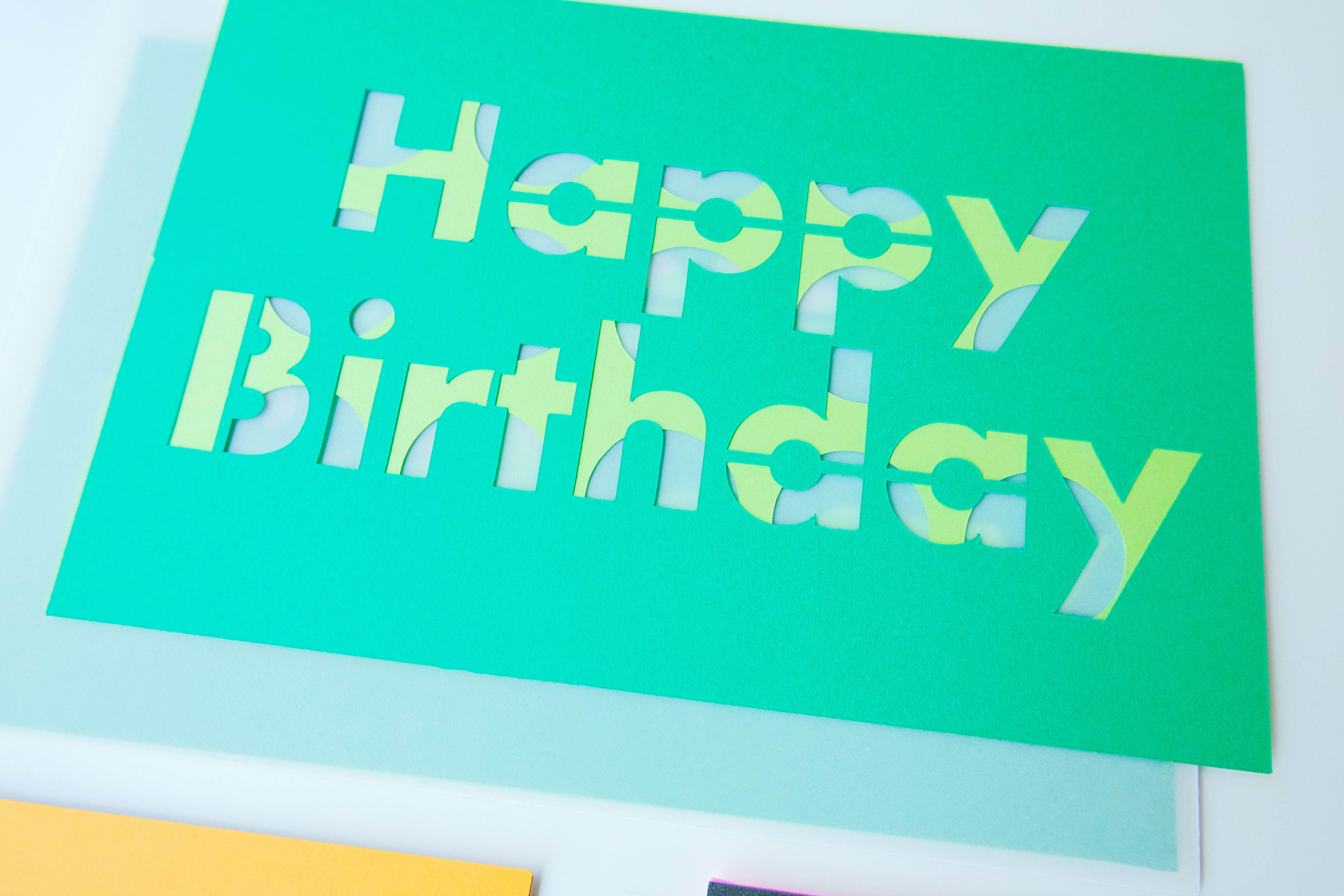 2枚重ねると模様が浮き上がる、大判のメッセージカードを作りました。