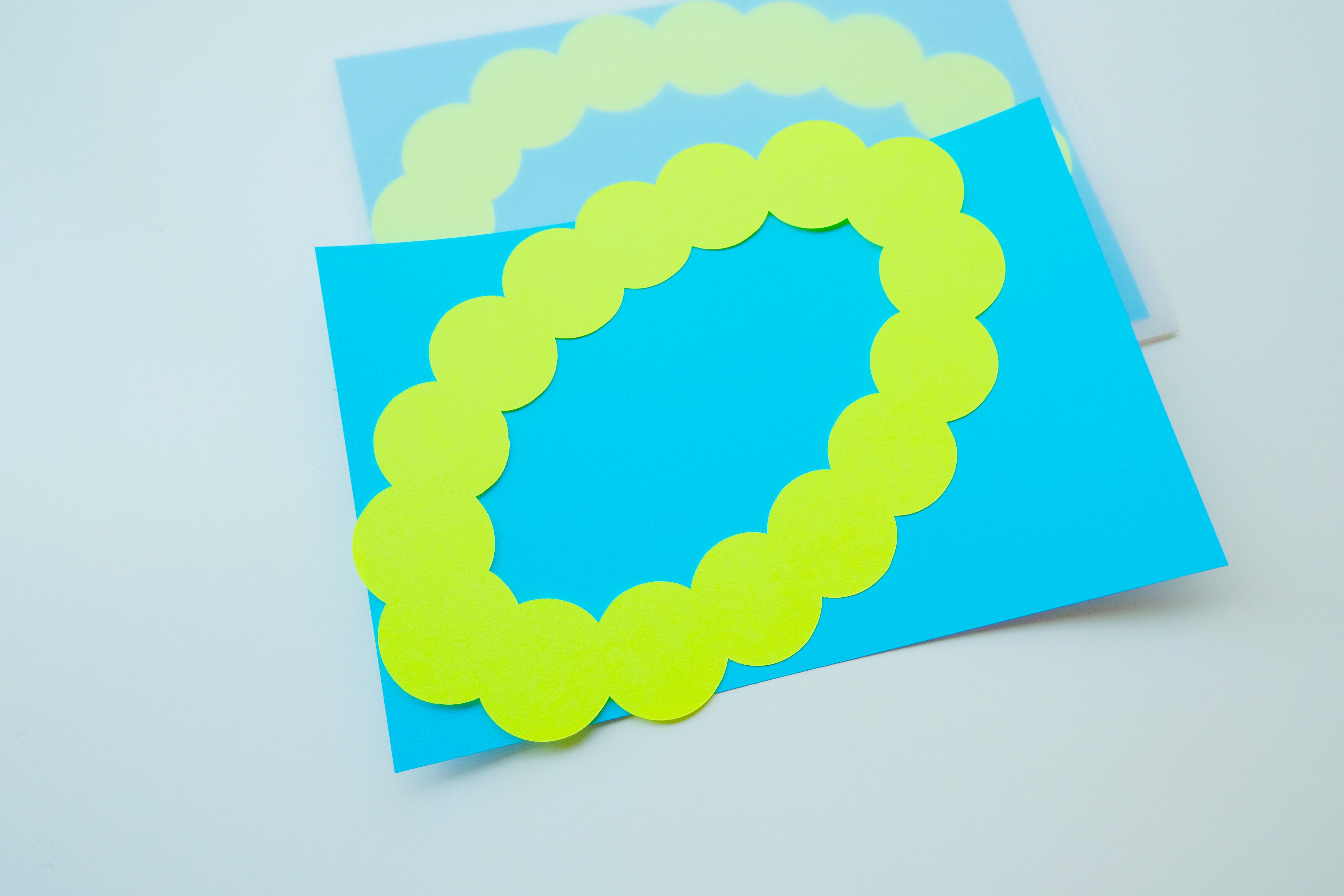 ネオンカラーの切り絵カード 黄色と青のまるまるフレーム