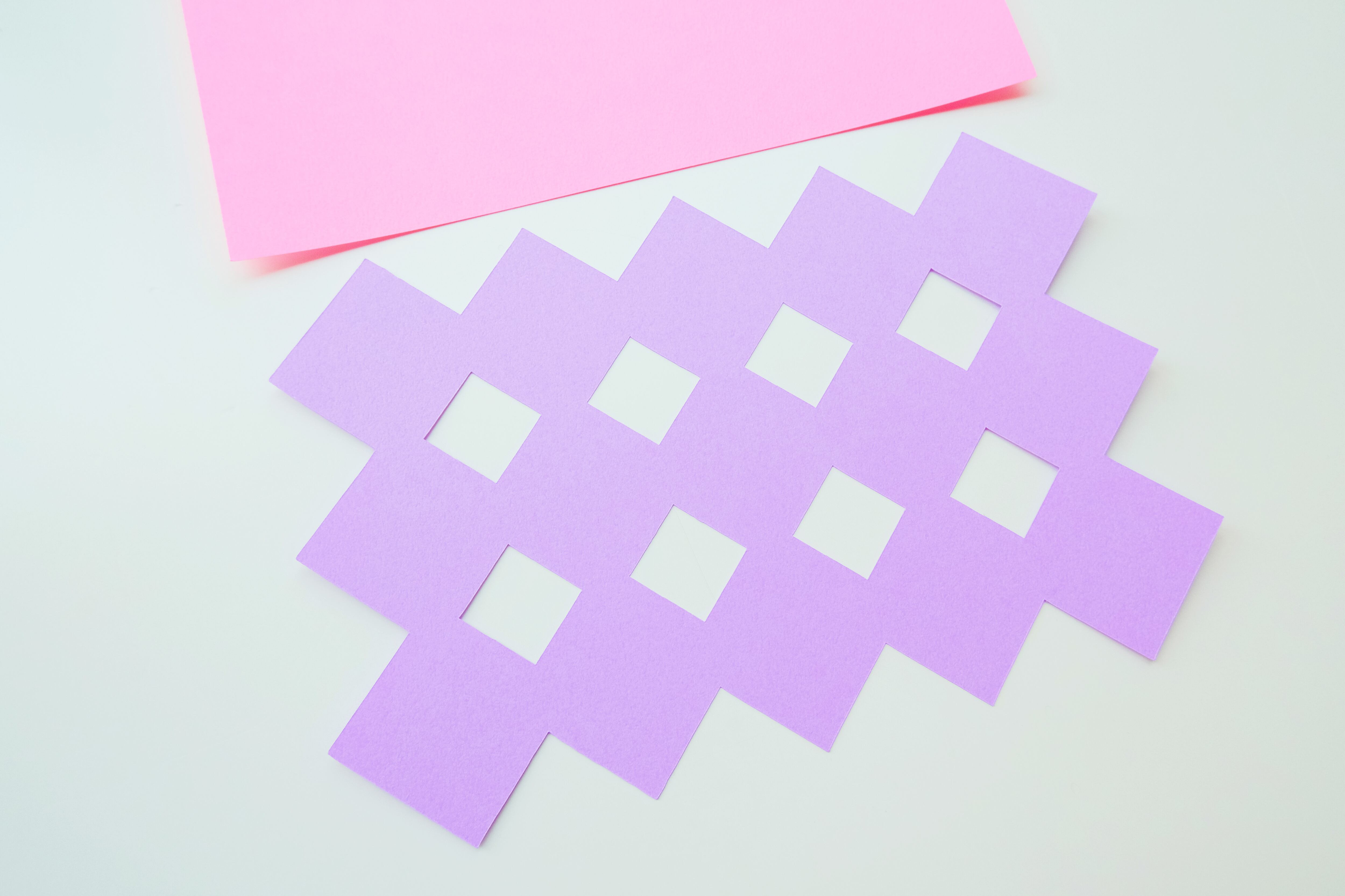 ネオンカラーの切り絵カード ピンクと紫のギザギザ