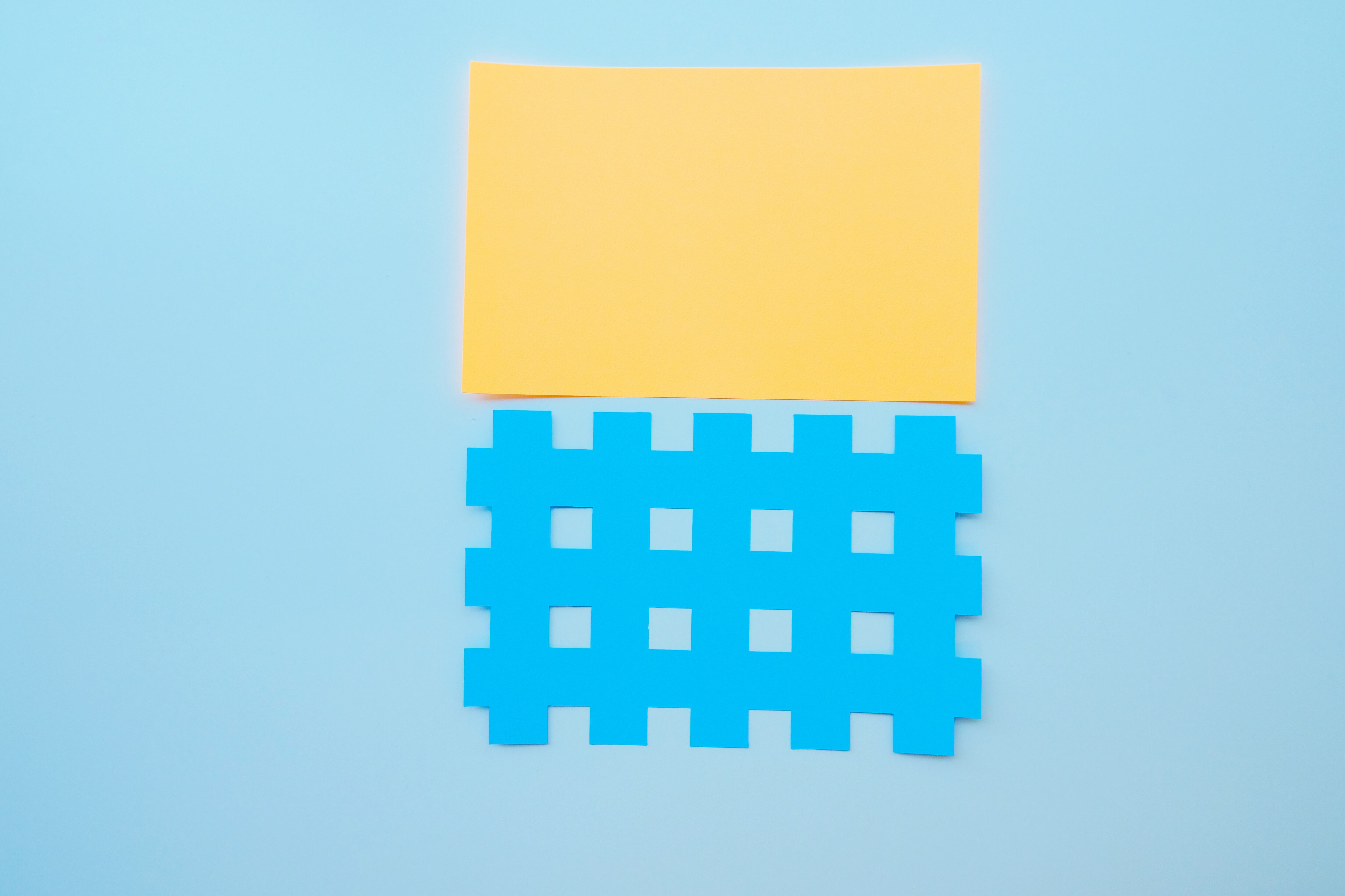 ネオンカラーの切り絵カード オレンジと青のチェック