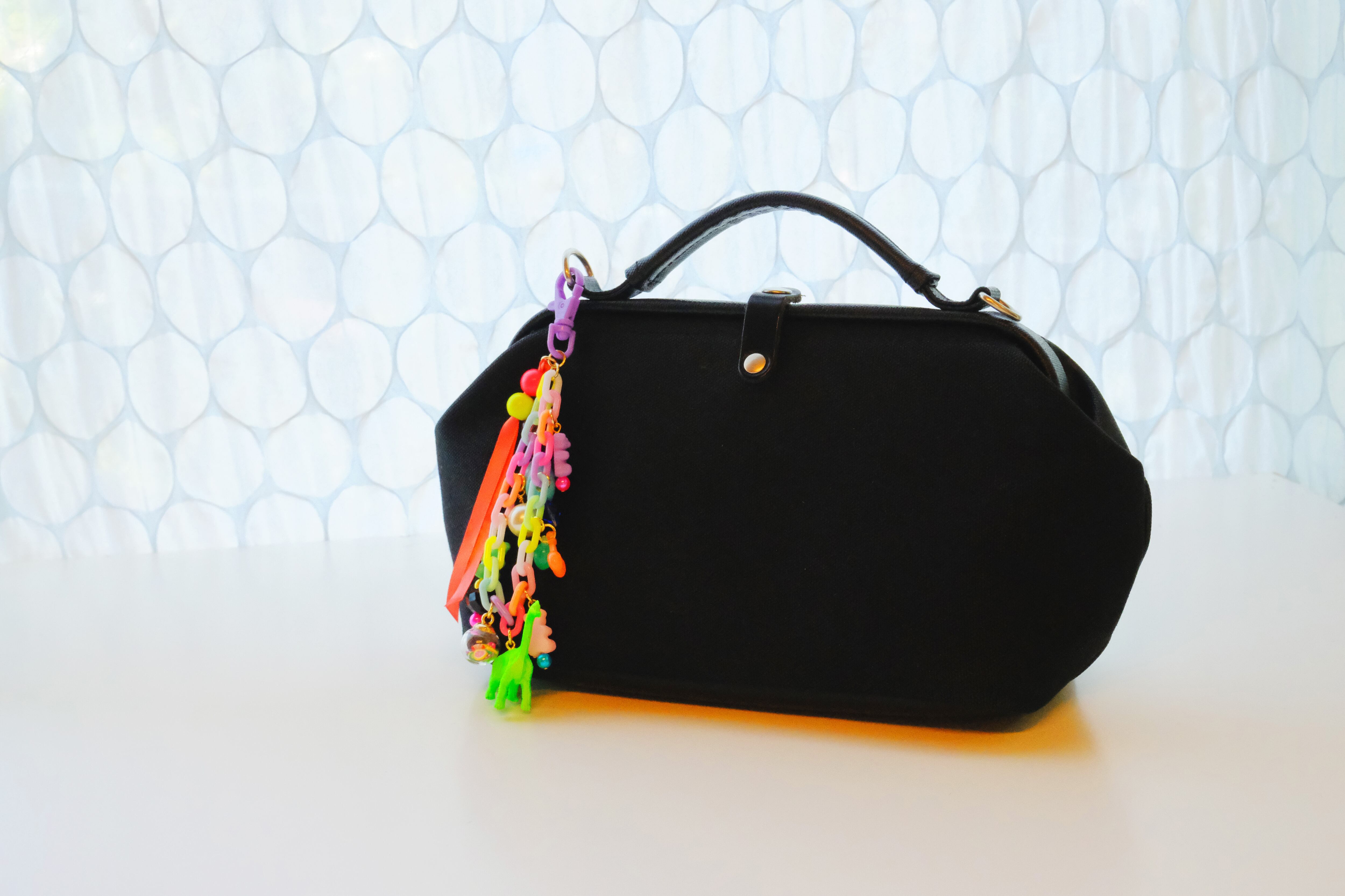 The key chain and the beaded chain are made of plastic, giving it a retro, kitschy cuteness.