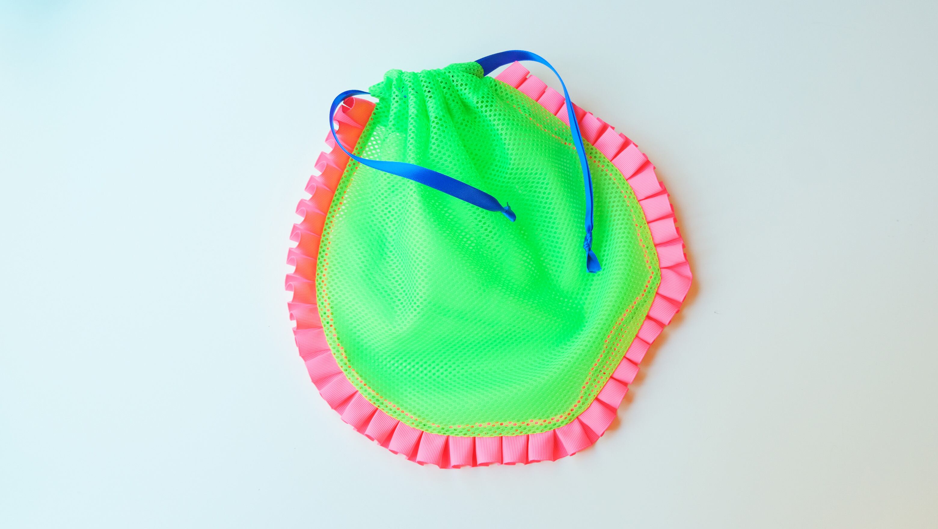 巾着 巾着袋 フリル巾着 メッシュポーチ ポーチ 小物入れ バッグインバッグ カラフル 蛍光 ネオン ピンク グリーン 派手 かわいい 個性的雑貨