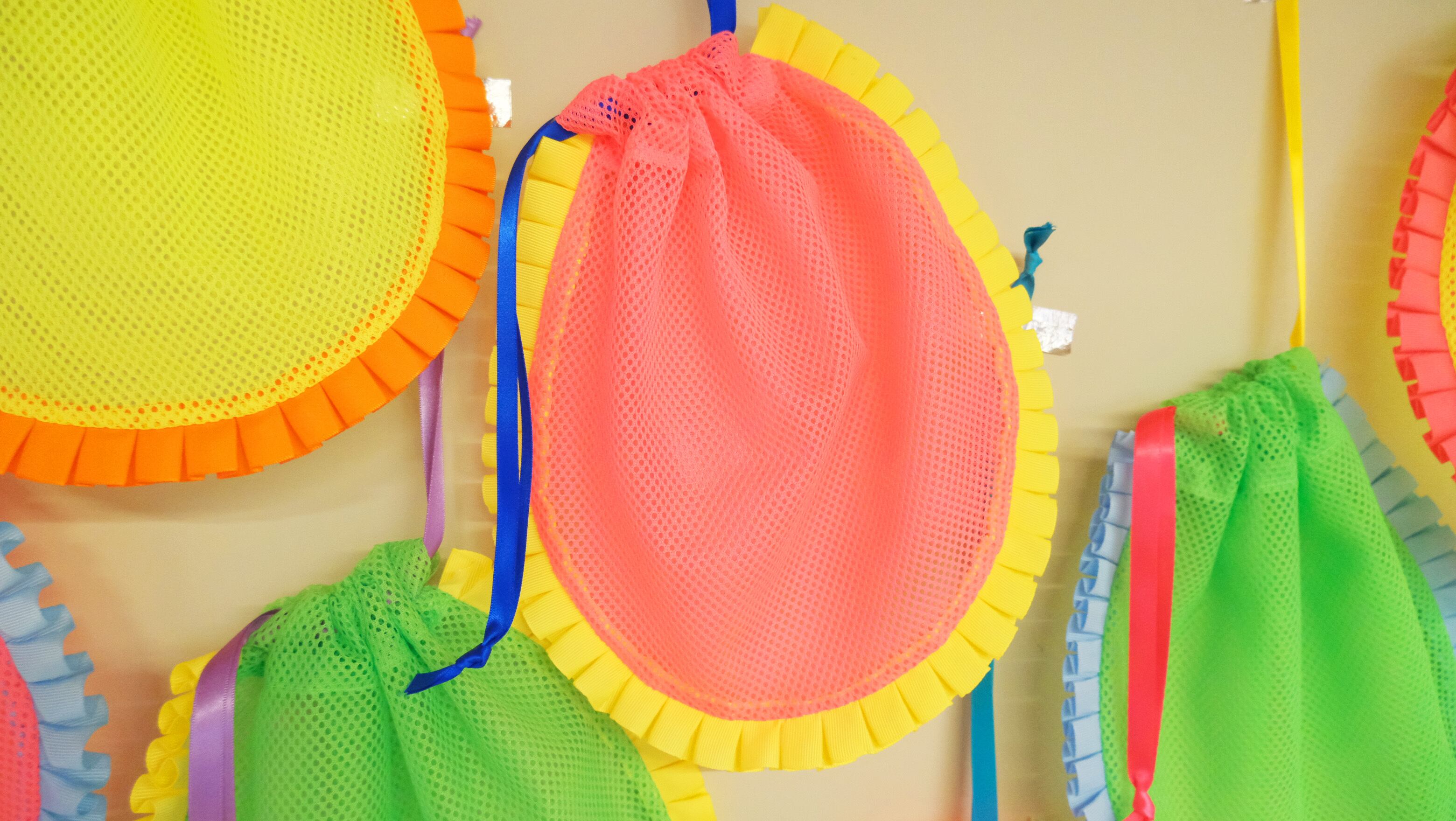 巾着 巾着袋 フリル巾着 メッシュポーチ ポーチ 小物入れ バッグインバッグ カラフル 蛍光 ネオン ピンク イエロー 派手 かわいい 個性的雑貨
