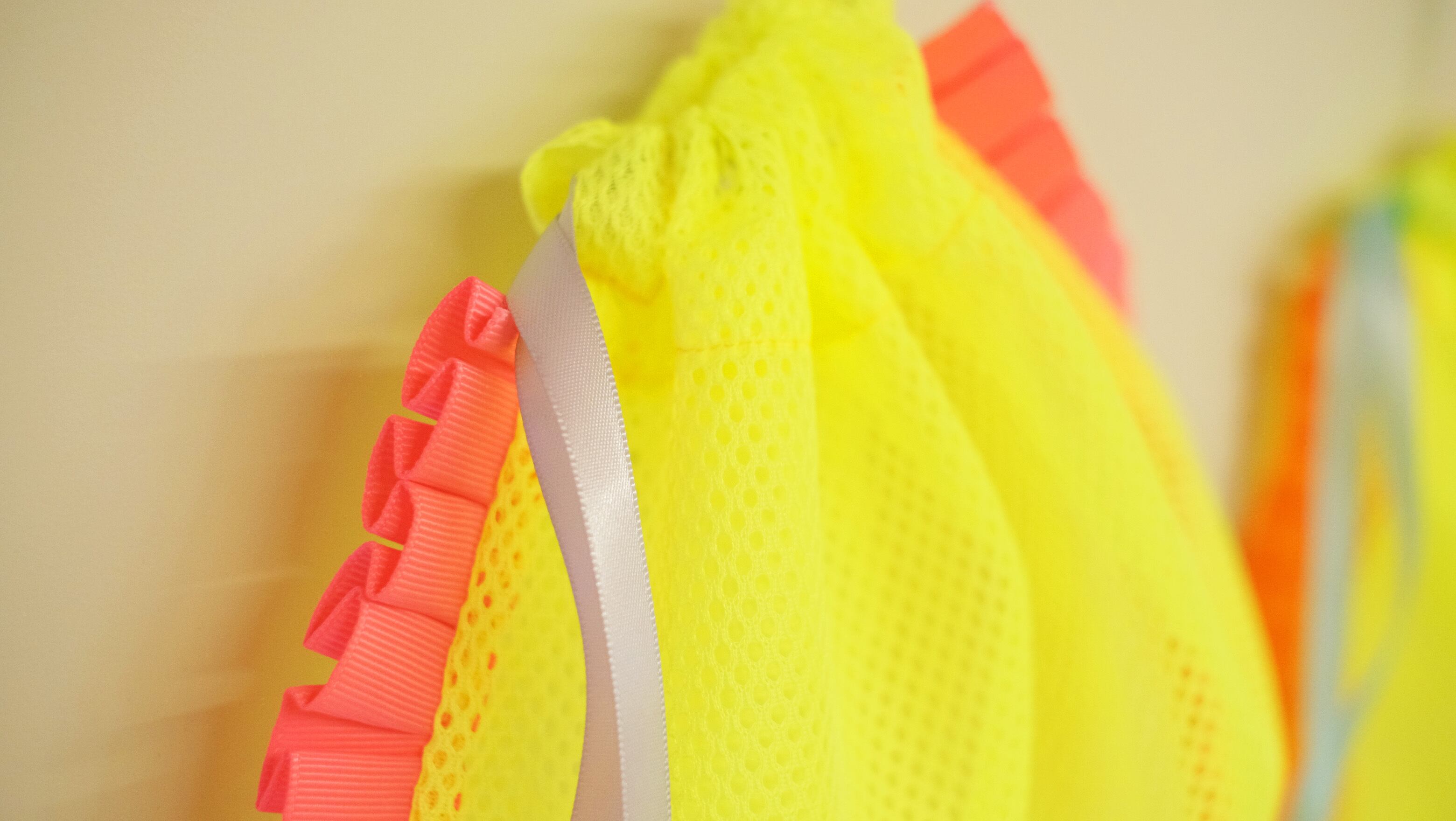 イエローのメッシュとピンクのフリルが目を引く、